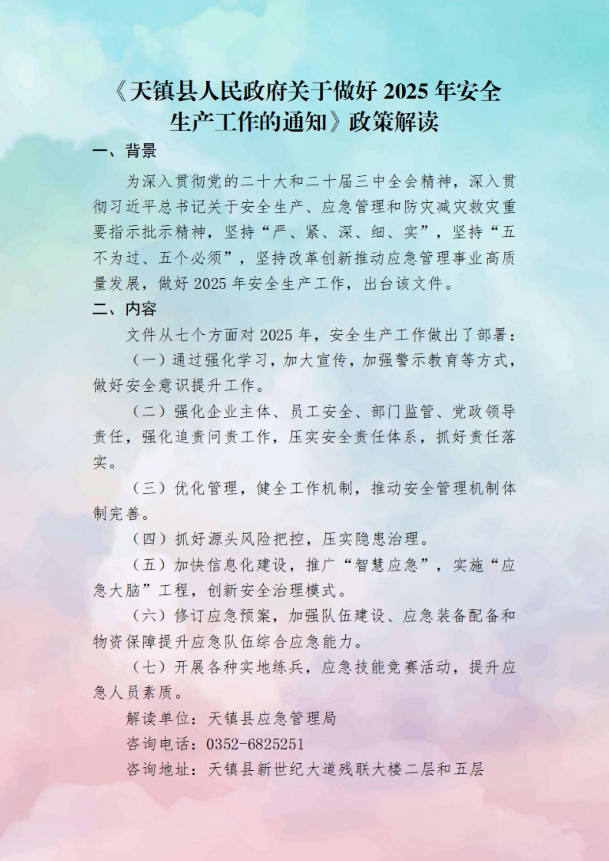 【圖解】關于《天鎮縣人民政府關于做好2025年安全生產工作的通知》的政策解讀